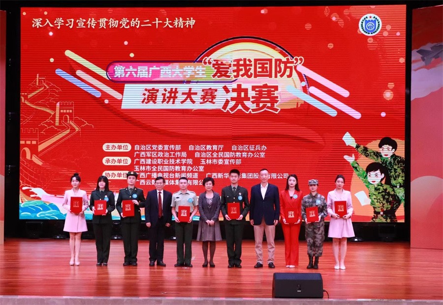近日,由广西壮族自治区党委宣传部、自治区全民国防教育办公室联合自治区教育厅、自治区征兵办、广西军区政治工作局主办的第六届广西大学生“爱我国防”演讲大赛决赛在南宁举行。我校动画与传媒学院播音与主持艺术专业2101班陈锘尧代表学校参赛,并在众多选手中脱颖而出,荣获三等奖。