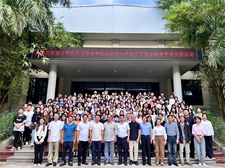 近日,北海艺术设计学院与贵州大学哲学本科生学术交流活动开幕式在我校西校区大礼堂顺利举行。此次开幕式由北海艺术设计学院主办, 贵州大学哲学学院党委书记周乐成、哲学学院宋君修博士、哲学学院梅其君副院长以及学生代表受邀出席。我校总督学王斌,人文教育学院名誉院长、哲学专业带头人蒙绍荣教授,人文教育学院院长熊秀峰参加此次活动,开幕式由李水亮副院长主持。