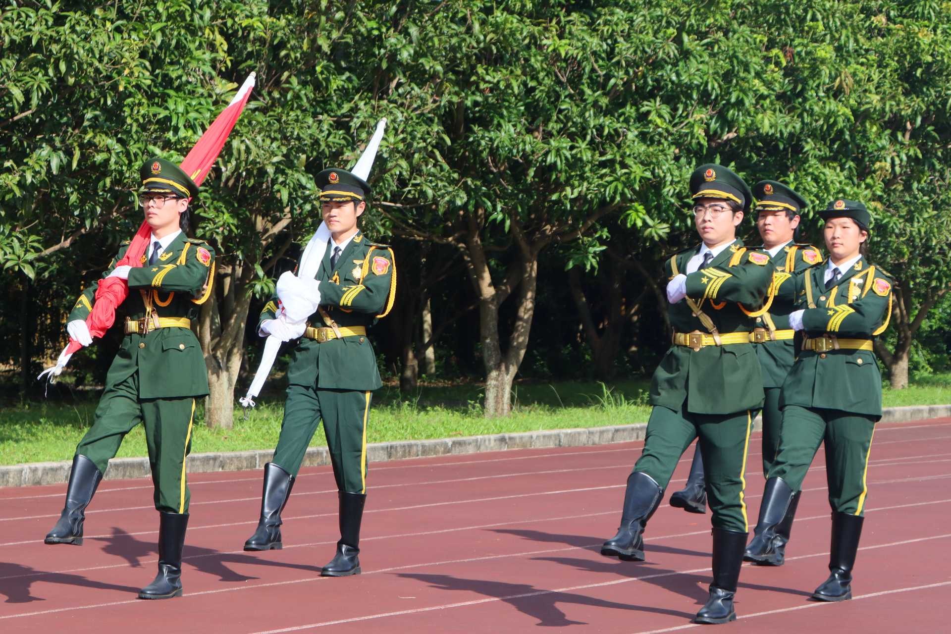 10月1日,为庆祝中华人民共和国成立 76 周年,大力弘扬爱国主义精神,我校在西区操场举行庄严的升旗仪式。